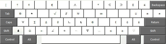 This is a modified version of the UK English keyboard layout for Microsoft Windows, adding many useful physics and maths symbols. I use it for input in Word. It currently does not work with LaTeX or LyX, and only partially works with MathType. Unshifted and shifted keys are the same as the UK layout; the additional characters make use of the AltGr key (to the right of the spacebar) and the Shift+AltGr combination, which give almost twice as many character positions as are available as standard.